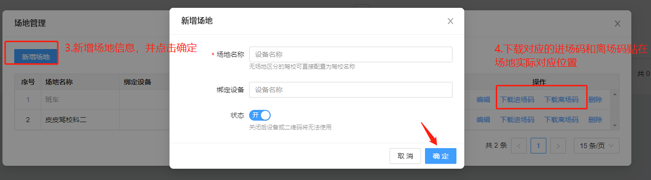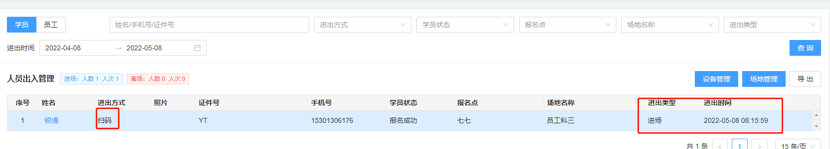 扫码进出场(无闸机)操作方法:设定对应的进出场二维码---学员或员工扫描对应的二维码信息产生对应进出场记录