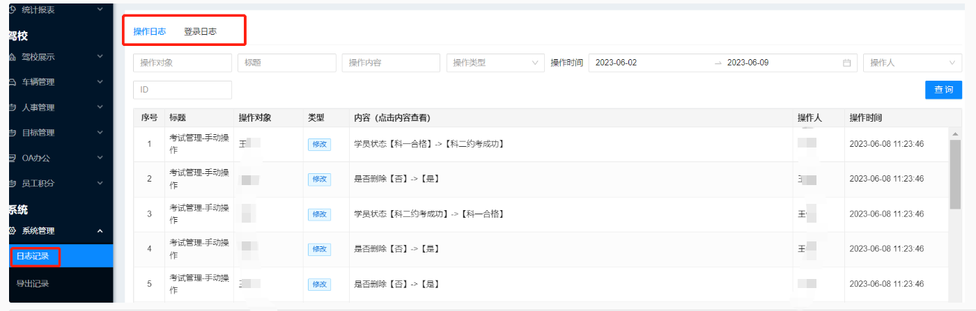 功能价值:日志记录包含操作日志、登录日志,操作日志记录修改删除相关信息,登录日志可以查看登录帐号情况,用来应对异常操作或者登录的核查,起到监察的作用。