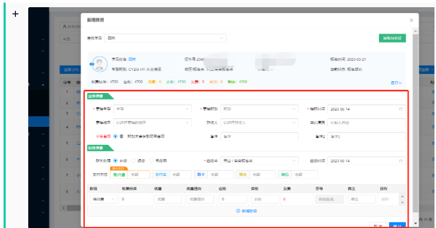 然后输入学员信息,具体弹窗如下:根据实际情况填写内容并确认。