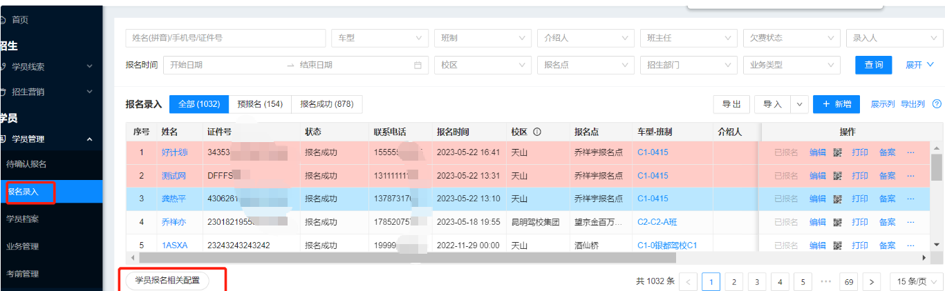 2)报名录入中可以进行报名相关配置,根据驾校自身情况进行配置。