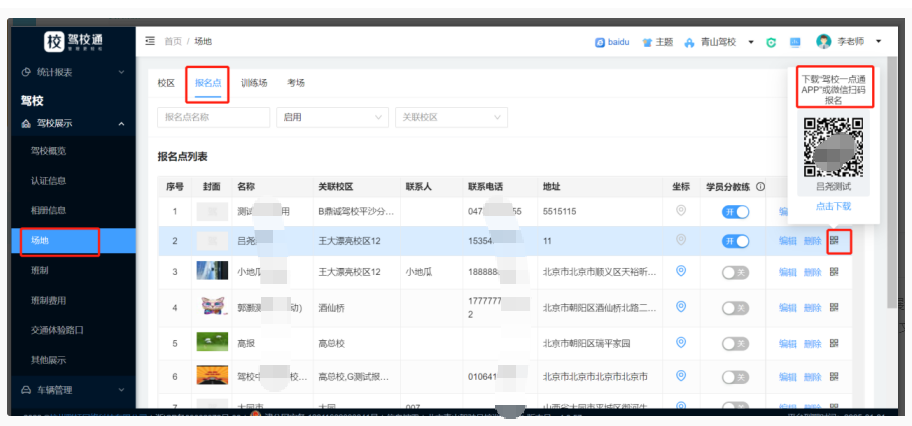 4、微信/《驾校一点通》APP 扫码报名——操作对象学员适用于招生旺季,可减少学员排队办理报名手续等待时间。驾校将驾校展示-场地-报名点后的二维码打印贴至桌面或墙面供学员自行扫码提交报名信息;该类报名方式支持线上支付(注:线上支付操作方式详见下方驾付通图文操作)