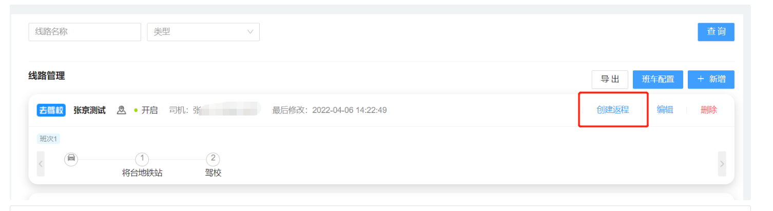 5. 创建返程线路,可根据上述步骤进行创建,也可通过原有线路直接进行创建。