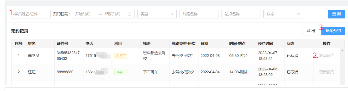 1)班车线路,可根据驾校情况自主选择是否开启预约;