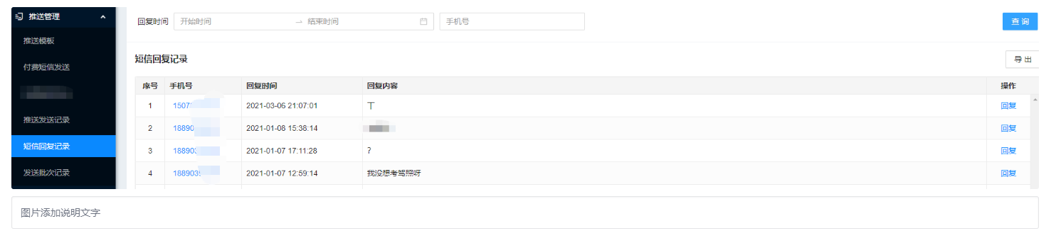 推送管理-短信回复记录