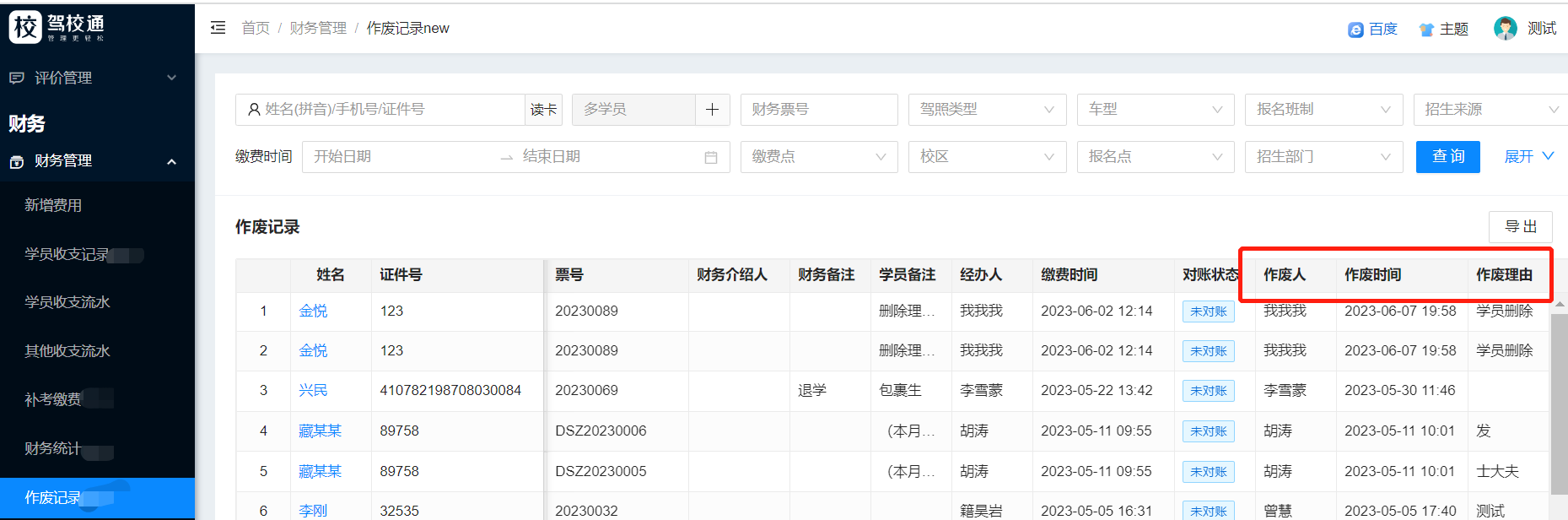 财务管理-作废记录